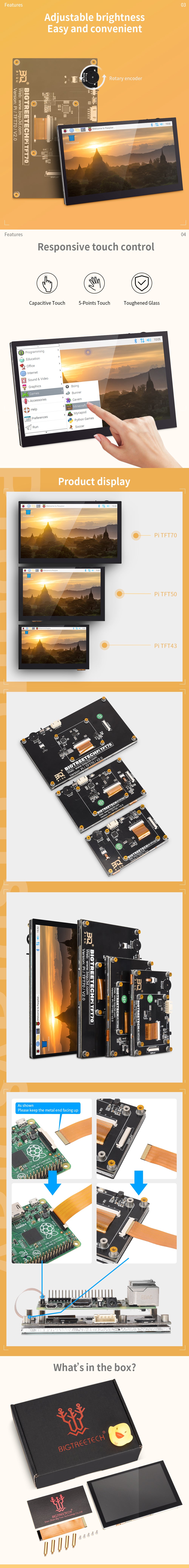 - The BTT PI TFT 50 V2.0 is a 5-inch LCD touchscreen display designed for Raspberry Pi, with a resolution of 800x480 and a display area of 108x64.8mm.